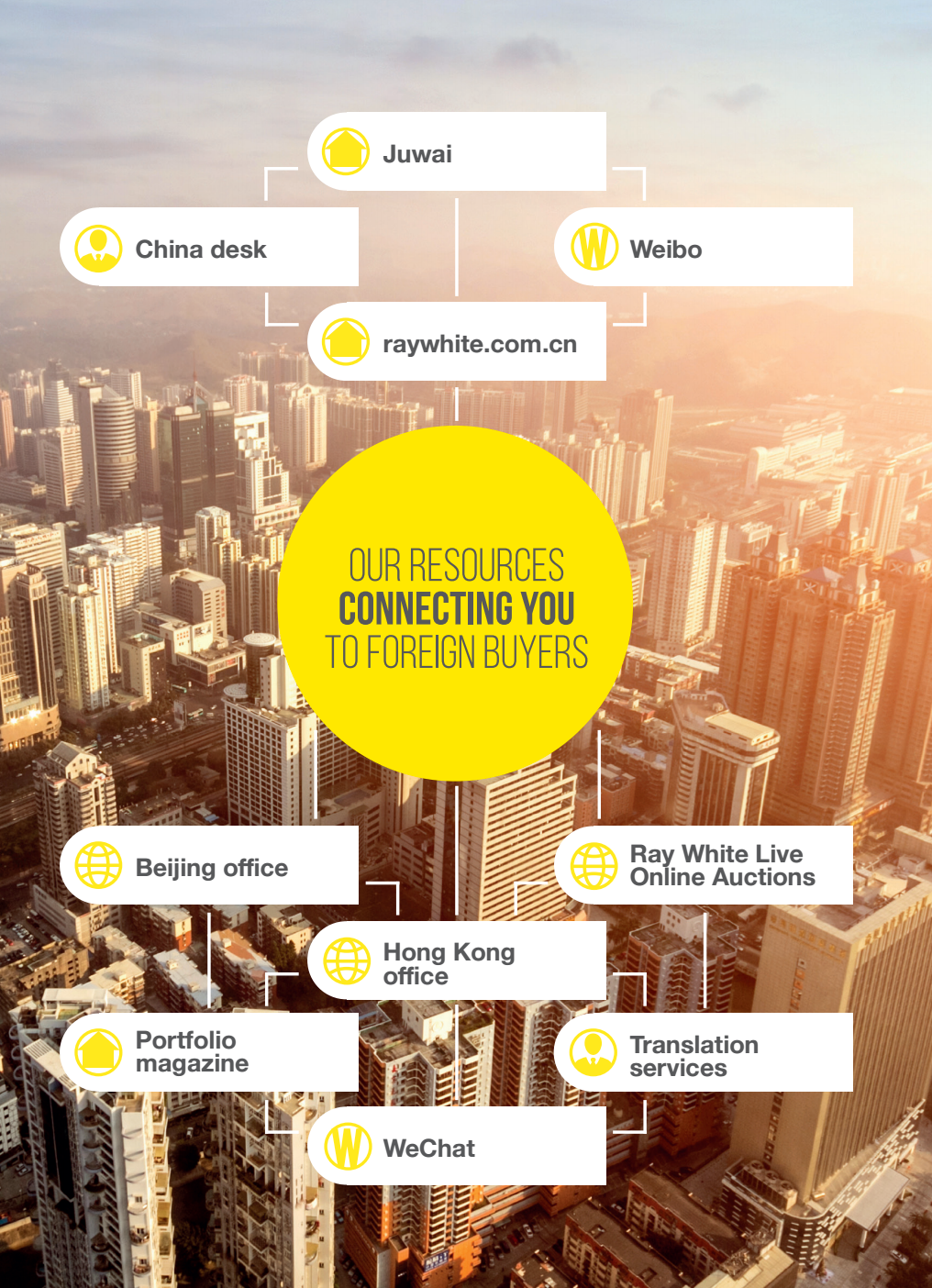 Our local China Desk in Australia showcases Ray White’s Australian and New Zealand listings to Chinese investors and facilitates introductions between investors and agents.
